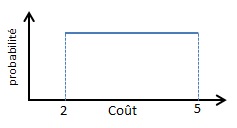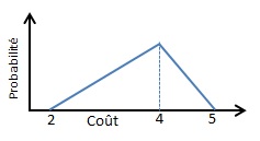 L'impact est modélisé par une VA qui représente au mieux les conséquences possibles du risque (c'est à dire les coûts générés par la réalisation de l'évènement) avec les probabilités associées. Dans l'application disponible en ligne, trois lois sont actuellement retenues pour décrire un risque X :